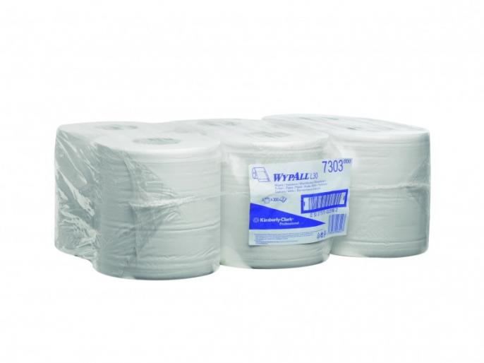 Формат поставки: большой рулон с перфорацией для высокой проходимостью. Может использоваться с переносными или стационарными диспенсерами для контроля расхода продукта и уменьшения объема отходов. Бывшее наименование 7303 - WYPALL® L30 Двухслойные бумажные протирочные салфетки в рулоне с центральной подачей, 300 листов.